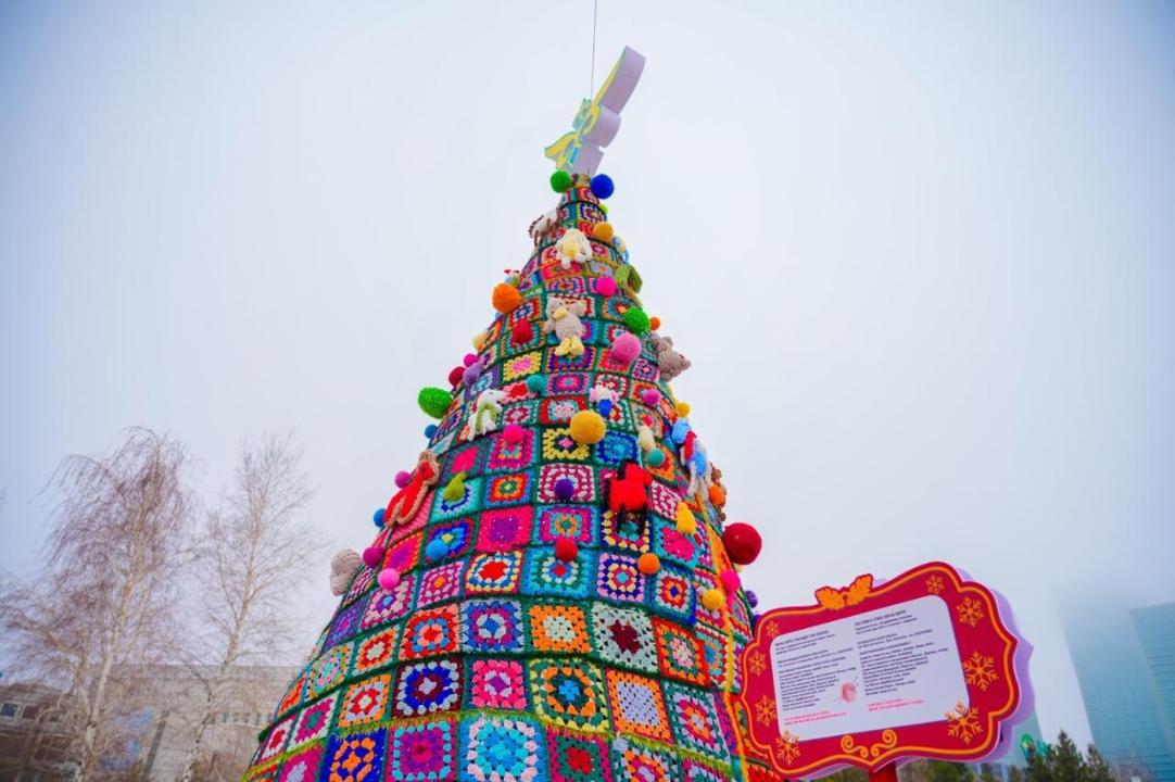 В Астане создали новогоднюю елочку в стиле құрақ-көрпе