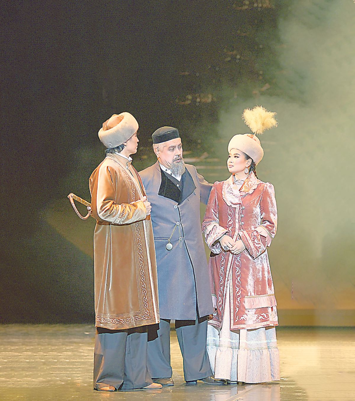 – Мы старались делать декорации легкими, подвижными, чтобы в них удобно было работать актерам, помогая им раскрывать внутренний мир своих героев. Кроме того, были использованы цифровые технологии и компьютерные спецэффекты, это позволило «оживить» сценический задник – на нем поплыли облака, закружили стаи птиц, помчали степные аргамаки. Что не только осовременивало постановку, но и создавало свое настроение в каждой сцене и усиливало музыкальное восприятие произведения в целом, – отметил Есенгельды Туяков.