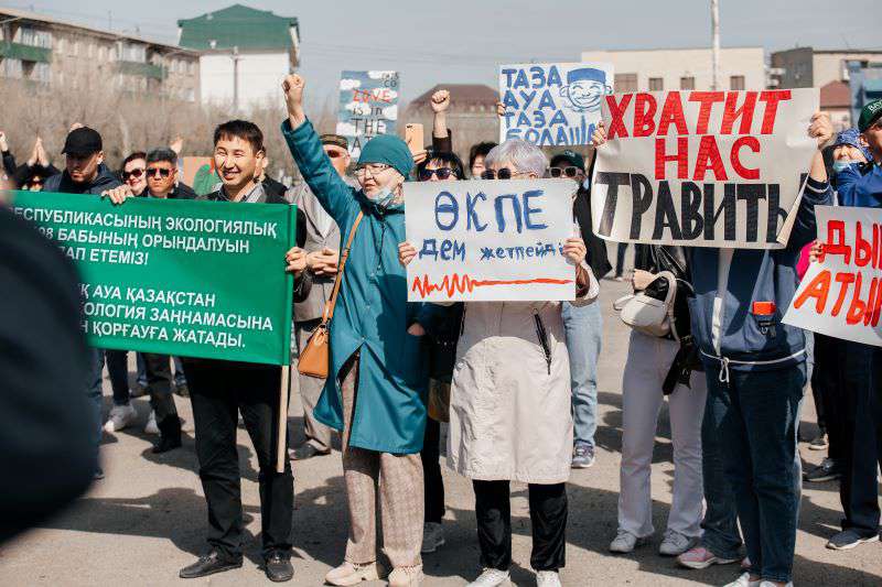 Жители Атырау провели экологический митинг, требуя от руководства местного нефтеперерабатывающего завода перестать травить воздух и людей.