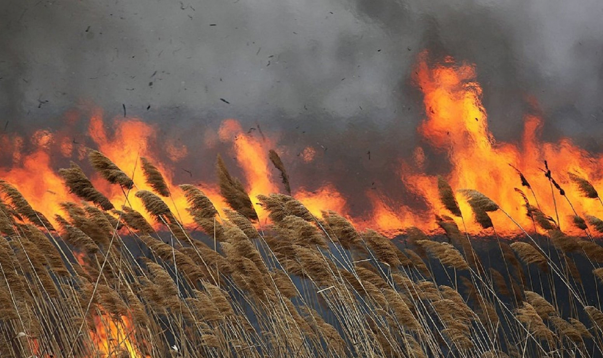 В Наурзумском заповеднике в Костанайской области уже три дня горит камыш, сообщает