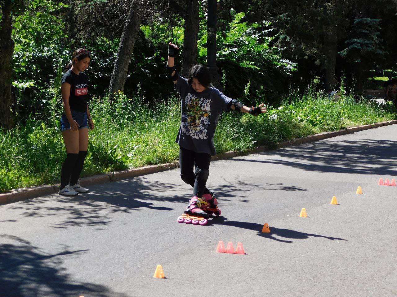 Что такое роллер-спорт и почему он набирает популярность в Алматы Спорт 17 июня 2022 г. 3:00 Юлия Миленькая КоРОЛИ асфальтной гонКИ В Алматы все больше набирает популярность роллер-спорт. «Погонять» на известную всем Старую площадь приезжают дети и взрослые со всего города. Недавно роллеры самых разных возрастов приняли участие в первых в этом сезоне соревнованиях. Чемпионы города Ранним утром перед зданием Казахстанско-Британского технического университета собрались участники алматинского роллер-феста. Разминка перед стартом представляла собой настоящее шоу, в котором маленькие роллеры со спортсменами постарше упражнялись в катании на заданной дистанции, ловко обходя разноцветные фишки. Каждый спортсмен облачился в «защиту» в виде шлема, налокотников, наколенников и перчаток и вооружился личным багажом навыков. В соревнованиях принимали участие как любители, так и профессиональные спортсмены. И если для одних ролики – хобби, то для других, среди которых представители команд по горным лыжам и конькобежному спорту, – эффективный и альтернативный способ подготовки к зимнему сезону. Впервые в истории роллер-спорта Казахстана были разыграны медали в одной из самых творческих дисциплин – слайдах. Она включает в себя различные техники фигурного скольжения и торможения на роликах. В слайдах оцениваются уровень сложности трюка и длина тормозного пути. София Хагай, воспитанница команды Roller School Almaty, завоевала первое место, удостоившись титула чемпионки города. Призерами соревнований в этой же дисциплине стали Арьян Кадыров и Валерия Раздевич. Позже на старт детского кросса вышли самые маленькие и юные роллеры. Мальчики и девочки соревновались вместе в дисциплине слалом. Роликовый «квест» нужно было пройти строго по выстроенному маршруту с препятствиями. Судьи соревнований оценивали качество пройденного пути и время его прохождения. Юные роллеры подошли к старту со всей серьезностью и ответственностью. Ведь на кону стояли медали и распределение мест среди самых быстрых и ловких. Лидирующие позиции в группе до 7 лет заняли мальчики – Макар Самоделкин, Николай Захаров и Ариан Усманов. Хотя девочки тоже уверенно шли к цели и стойко сражались за лидерство. И хобби, и работа Пятилетняя София Мартин начала заниматься роликами в октябре прошлого года. По прошествии нескольких занятий с тренером наступила холодная осень, а за ней и зима – София вернулась к тренировкам только в начале апреля 2022-го. И вот она уже рассекает асфальт на своих первых в жизни состязаниях. – Мне очень понравилось участвовать в соревнованиях и получить подарок, а еще у меня есть медаль участницы. Кататься на роликах – это здорово и классно! – поделилась София. Юная спортсменка охотно вспомнила свой первый день тренировок и поведала о том, над чем она работала с тренером. – На моем первом уроке я училась правильно падать, а еще старалась делать «фонарики» (главное упражнение новичка в роллер-спорте. – Авт.). Сегодня я понимаю, что на роликах почти все можно делать, даже прыгать. На тренировках иногда учусь делать то, что я даже представить себе не могла, – поделилась довольная София. Юную спортсменку к старту подготовила тренер детской команды роликовой школы Алматы Екатерина Полухина. На соревнованиях Катя активно болела за своих учеников и была горда за