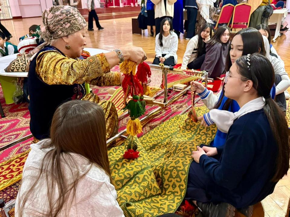 Участникам рассказали о таких предметах декоративно-прикладного искусства, как алаша, текемет, сырмак, тускииз, настенный ковер, баскур, кесекап, калта и богжама.