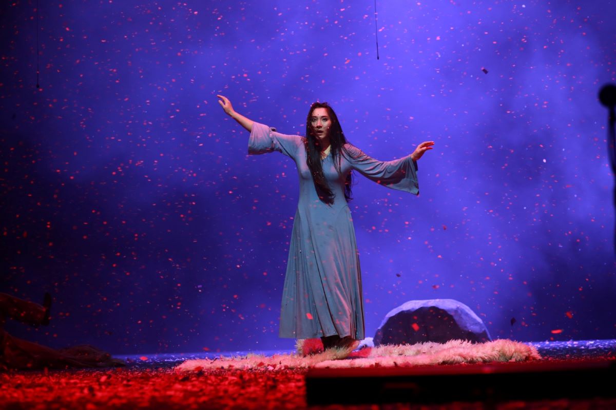 Романтическую атмосферу в спектакле создают и популярные песни Шамши Калдаякова.