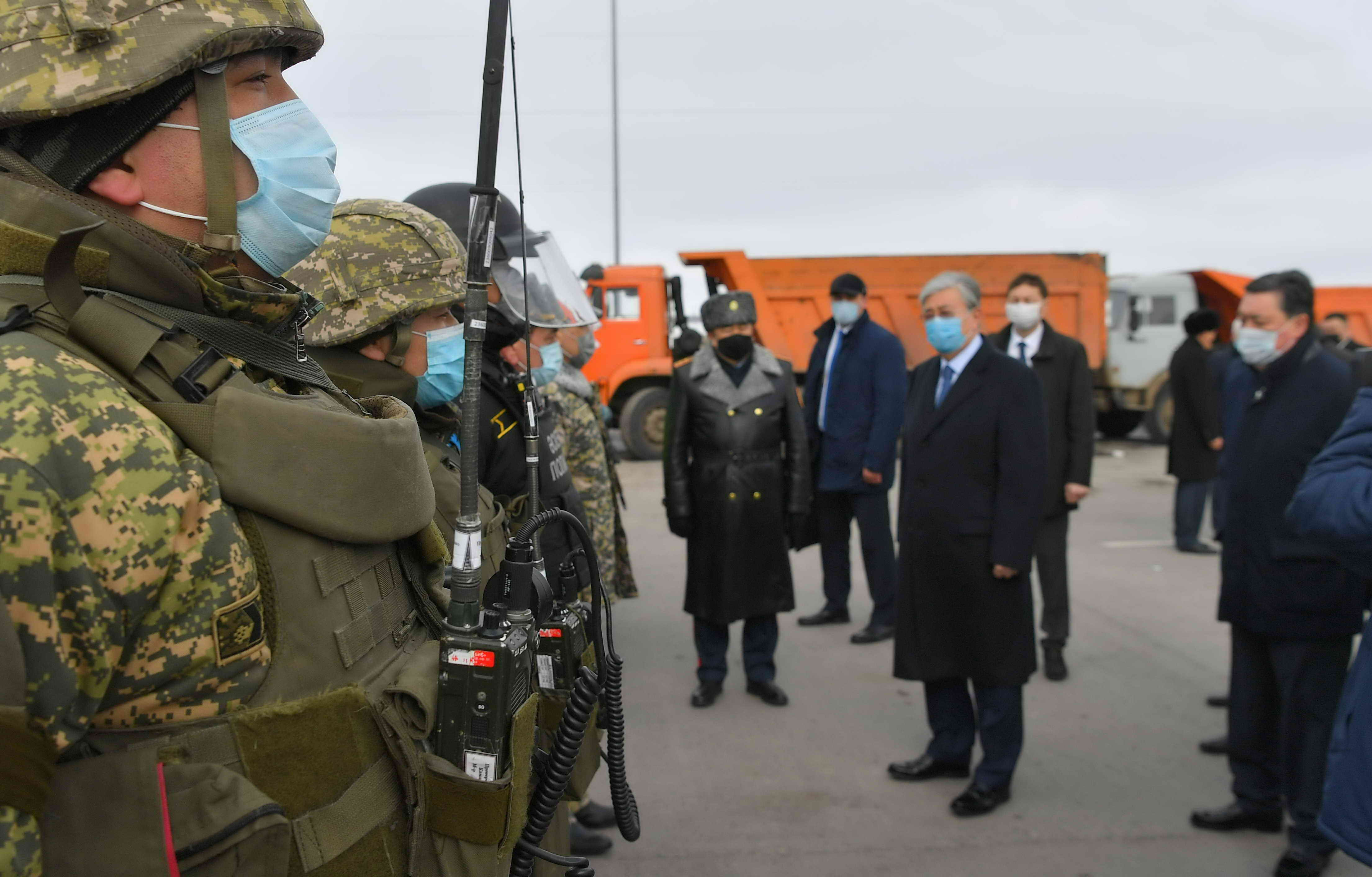 Президент Казахстана Касым-Жомарт Токаев посетил блокпост на въезде в город Нур-Султан, сообщает