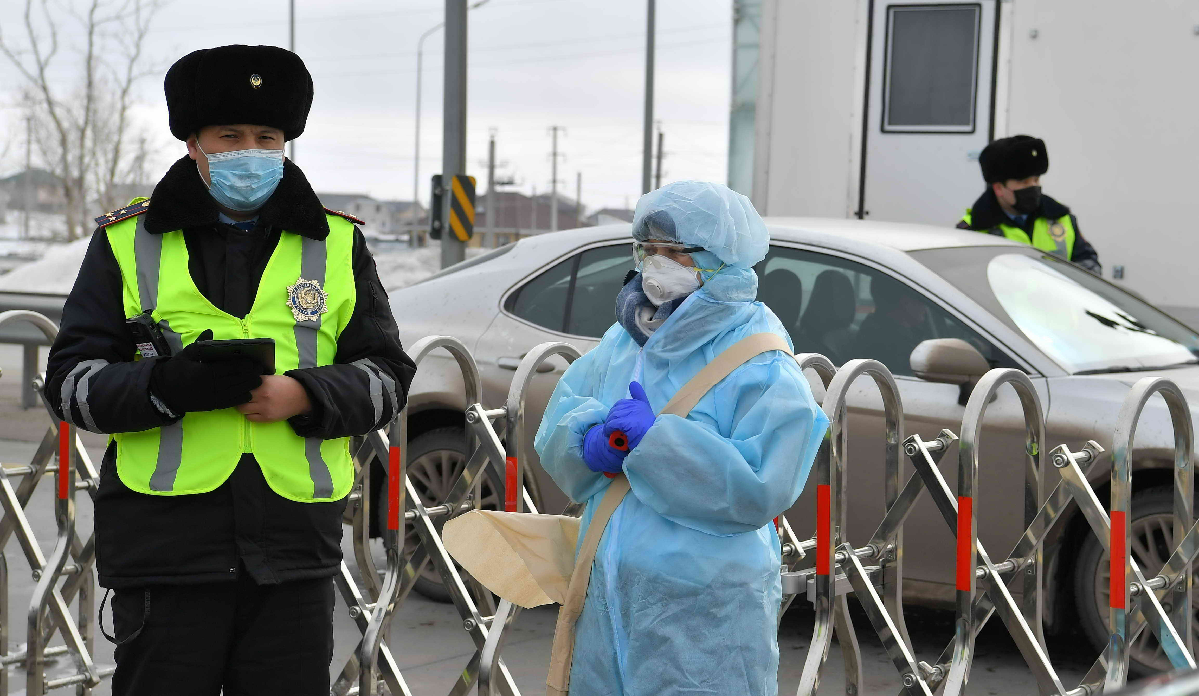 Касым-Жомарт Токаев осмотрел блокпост № 6 в районе поселка Жибек Жолы, который был установлен в связи с введением чрезвычайного положения в стране и карантина в столице из-за пандемии коронавируса.