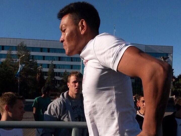 Сейчас Абильмансуров усердно тренируется и планирует побить мировой рекорд, принадлежащий россиянину Максиму Трухановцу, который в течение минуты поднимает туловище на турнике 21 раз.