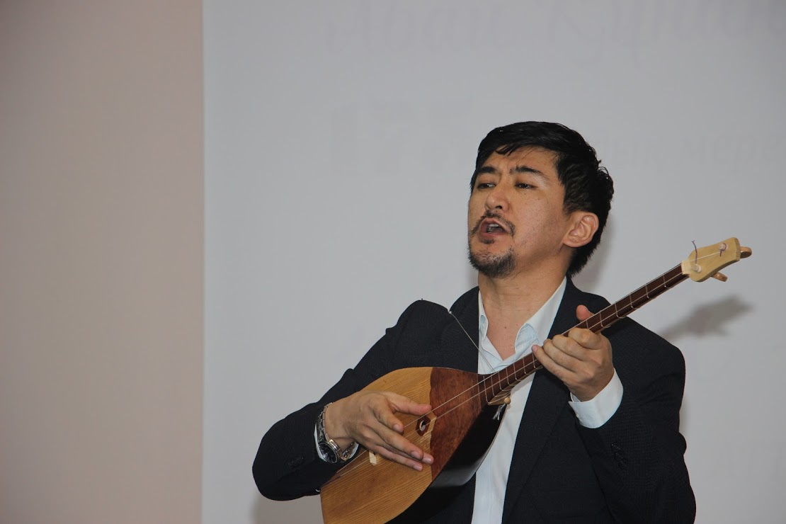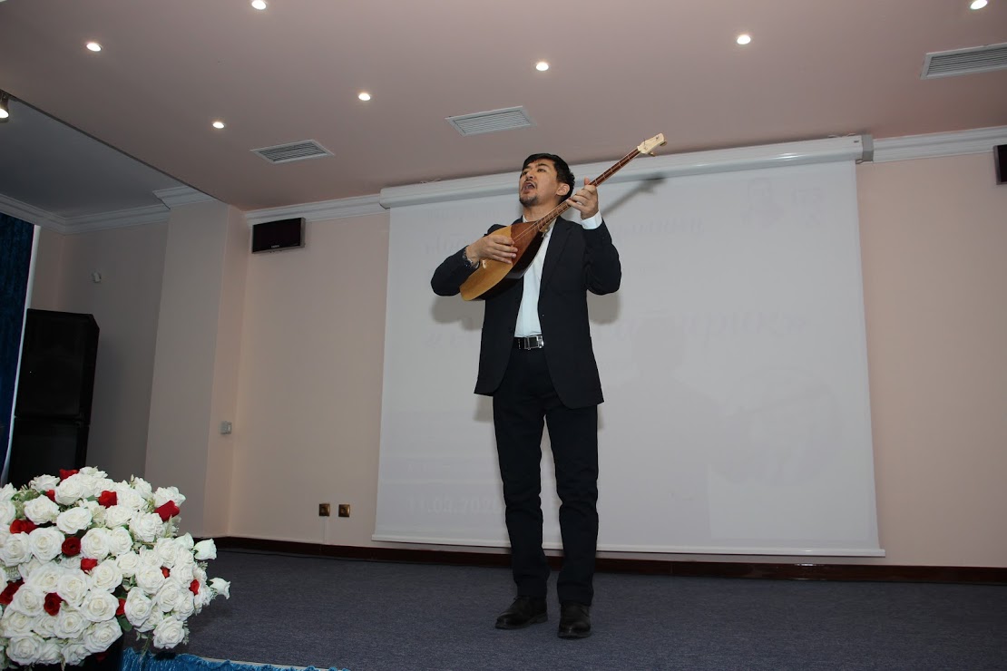 Литературный вечер открыл известный певец Ерлан Ырыскали с песней Абая "Сегіз аяқ".
