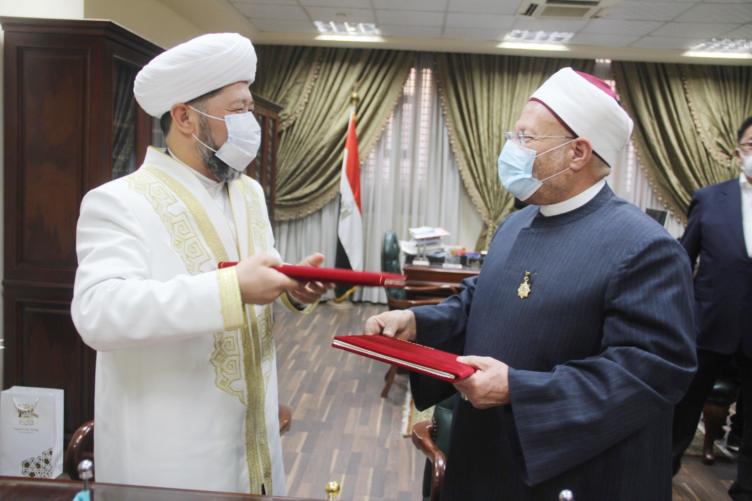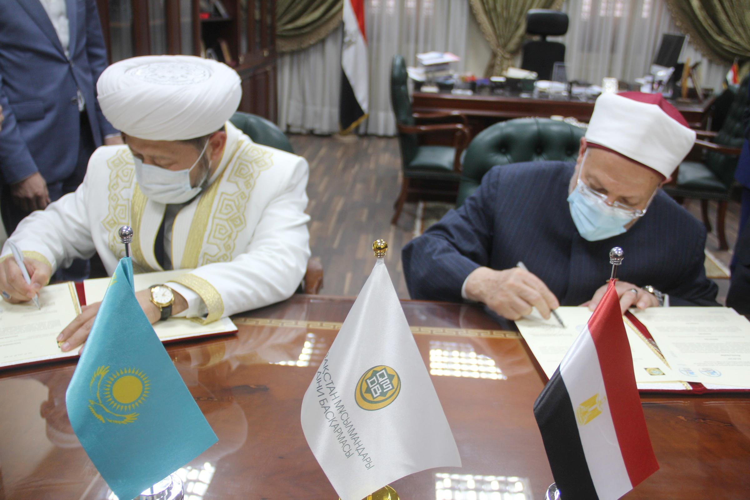 Муфтии Казахстана и Египта официально подписали соглашение о научном и религиозном сотрудничестве между Духовным управлением мусульман Казахстана и Центром фетв Арабской Республики Египет и обменялись документами с целью расширения двустороннего сотрудничества и братства.