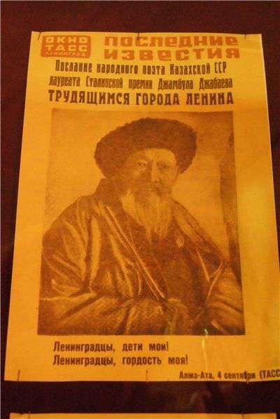 27 января 1944 года советские войска полностью освободили Ленинград от фашистской блокады. В истории казахской литературы беспримерный подвиг ленинградцев неразрывно связан с именем великого народного акына Жамбыла Жабаева.