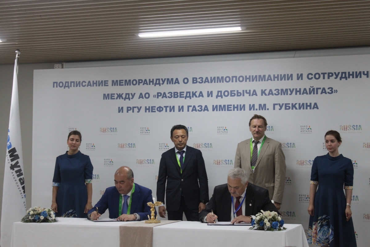 Соответствующий меморандум в павильоне Российской Федерации на территории Международной выставки «ЭКСПО-2017» подписан генеральным директором РД «КМГ» Курмангазы Исказиевым и ректором Губкинского РГУ нефти и газа Виктором Мартыновым.