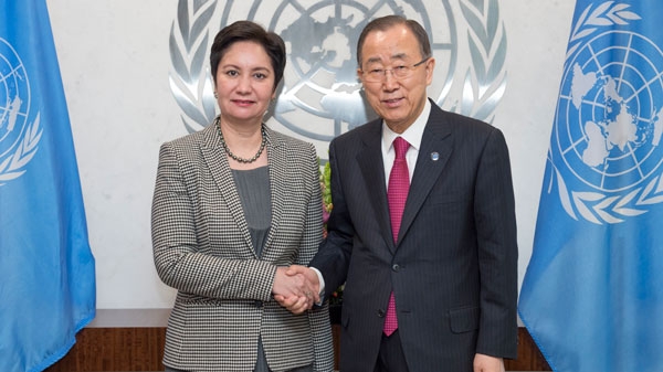 По окончании своего выступления Государственный секретарь Республики Казахстан Г. Абдыкаликова встретилась с Генеральным секретарем ООН Пан Ги Муном. Гульшара Абдыкаликова передала теплые слова приветствия Президента Казахстана Нурсултана Назарбаева и поблагодарила Пан Ги Муна за всемерное содействие нашей стране в решении актуальных вопросов экономического, социального и институционального развития.