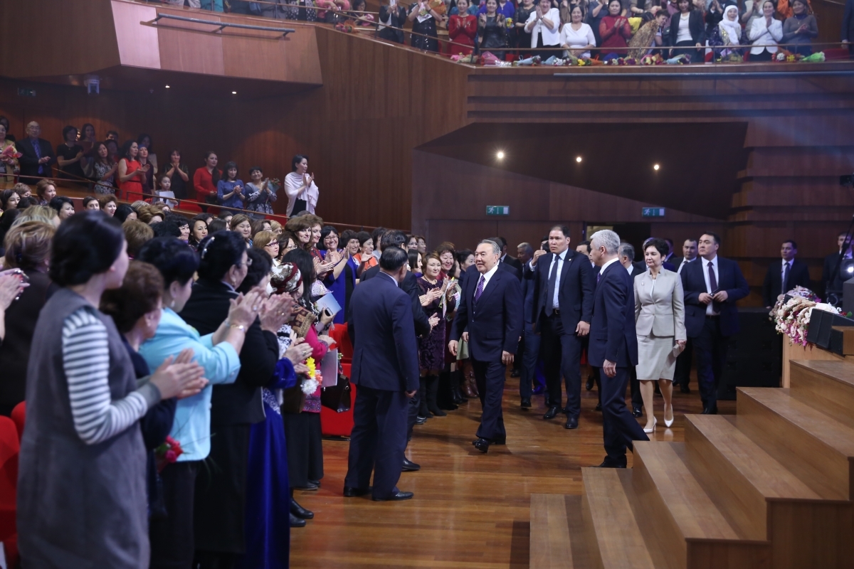 Глава государства посетил торжественный концерт "Әлемнің жарығы", посвященный празднованию Международного женского дня 8 Марта, передает