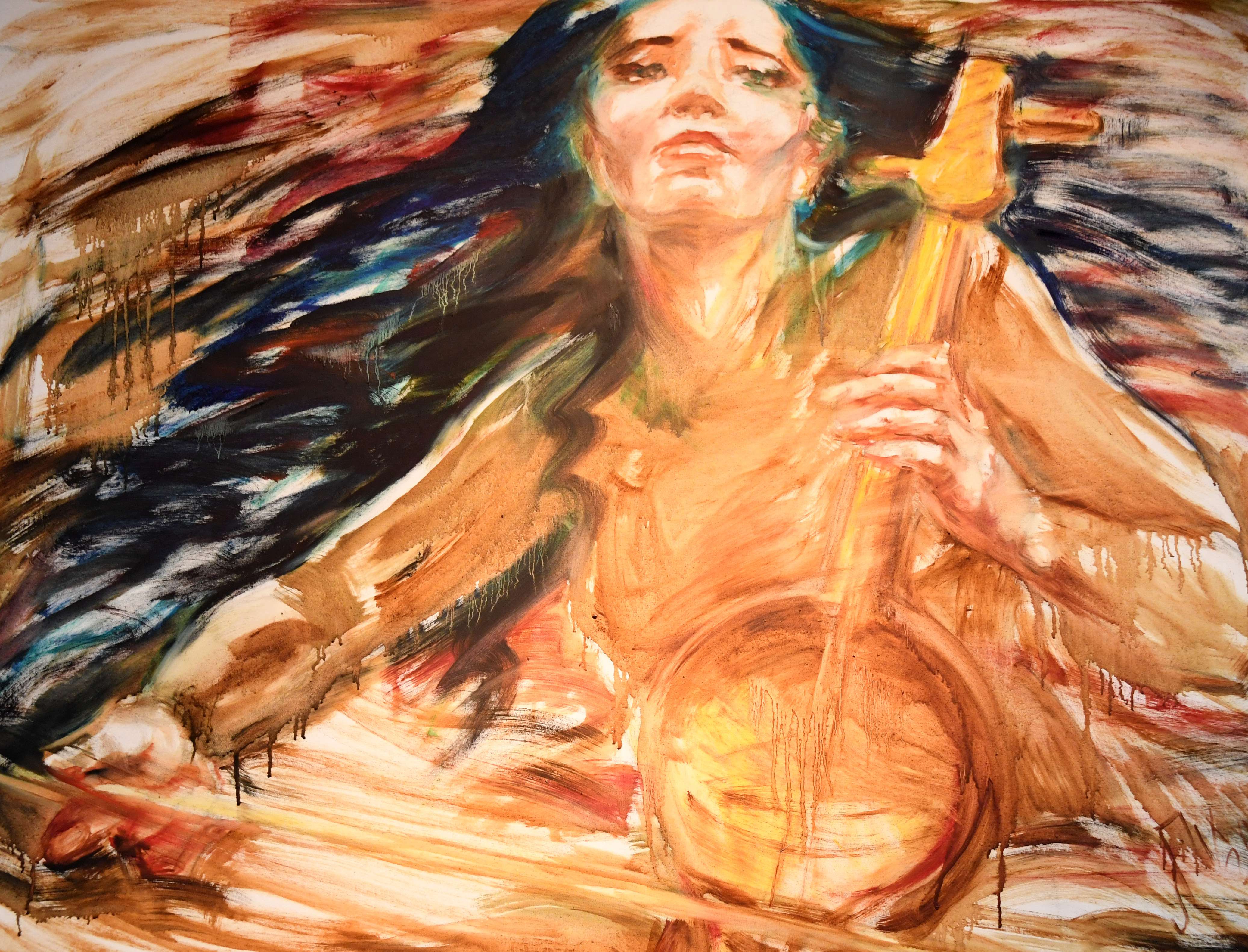 Не закрывая глаза 21 сентября 2022 г. 1:33 24301 Юлия Миленькая Казахстанские художники Лилия Позднякова и Георгий Ли через свое творчество проанализировали прошлое предков и свое настоящее на любимой казахской земле. Название выставки, на которой представлены живописные работы и арт-объекты в стиле контемпорари арт, было продиктовано ее авторам известными строками поэта-песенника Леонида Дербенева: «Есть только миг между прошлым и будущим, именно он называется жизнь». Собственно, и сама экспозиция представляет собой перекличку дня сегодняшнего и вчерашнего, но в обоих случаях очень актуального, ценного и важного для обоих художников. – Когда в 1937 году корейцев депортировали в Казахстан, они выживали в тот страшный год благодаря помощи и поддержке простых казахов, – отмечает Георгий Ли. В знак благодарности казахскому народу художник пишет картины «Уштобе», «Миграция», «Баурсаки». – А я в детстве каждый год проезжала через весь Казахстан на поезде и любовалась огромным небом и бесконечной степью с важными верблюдами и мчащимися табунами лошадей, – продолжает Лилия Позднякова. – Видимо, поэтому одним из символов движения я выбрала бег коней. И это триптих «Куда бежим». Георгий как профессионал, мастерски владеющий различными техниками, порой драматичные чувства и эмоции изображает с помощью гиперболизации и деформации форм, контрастных и противоборствующих цветов. И как справедливо заметила искусствовед, заслуженный деятель РК Камилла Ли, даже если художники абсолютно разные по темпераменту, по своим творческим посылам, они в то же время очень близки друг другу: оба неравнодушны к событиям, происходящим в стране, и в каждой из своих работ отражают сегодняшнюю реальность. А все началось в 2012 году, когда миру была представлена творческая группа художников «Без названия». Ее идейными вдохновителями и участниками были Лилия Позднякова и Георгий Ли. Выйдя из этого коллектива в 2016-м, художники создали новое объединение «О-ШО». Оставшись в дуэте, Лилия и Георгий продолжили следовать идеям, установленным изначально: основам изобразительного языка, переосмыслению классических правил, поискам новых средств выражения личностного восприятия мира. – Марат Гельман (всемирно известный коллекционер, галерист, арт-менеджер. – Авт.) как-то сказал: «Мы жили в такое время, когда искусство было для искусства, сейчас же пришло время, когда искусство вышло в жизнь». У нас, казахов, о своих недостатках не принято говорить напрямую, для этого существуют айтысы, на которых люди выражают свои мысли с подтекстом. Многое из того, что сказали Лилия и Георгий, нам не совсем понятно сразу, но когда мы начинаем вникать в их работы, наша душа раскрывается – и мы улавливаем все детали, – отметила искусствовед, член Союза художников РК Мария Жумагулова. На сегодня и в Казахстане, и во всем мире большой проблемой становится мусор. Лилия и Георгий работают довольно давно в экологическом ключе, вторично используя различные материалы. Картины они пишут на упаковочном картоне, скульптуры лепят из газет и строительных отходов. Таким образом, шаг за шагом обычный мусор в их руках трансформируется в настоящие произведения искусства. Пред. След. Пред. След.