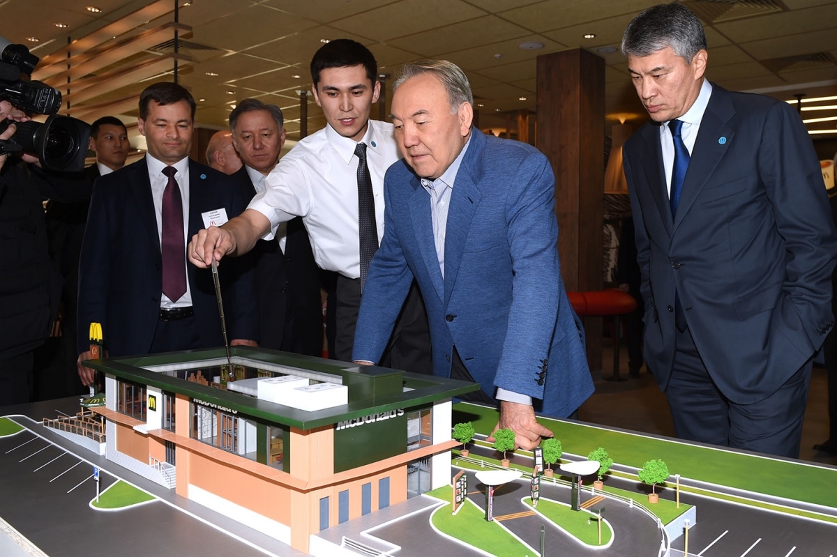 Президент Казахстана Нурсултан Назарбаев посетил первый в республике ресторан быстрого питания "Макдоналдс", передает