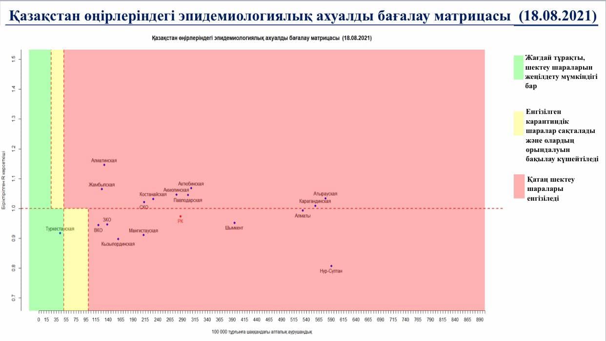 Представлена матрица эпидемиологической ситуации по коронавирусу в Казахстане на 18 августа, передает