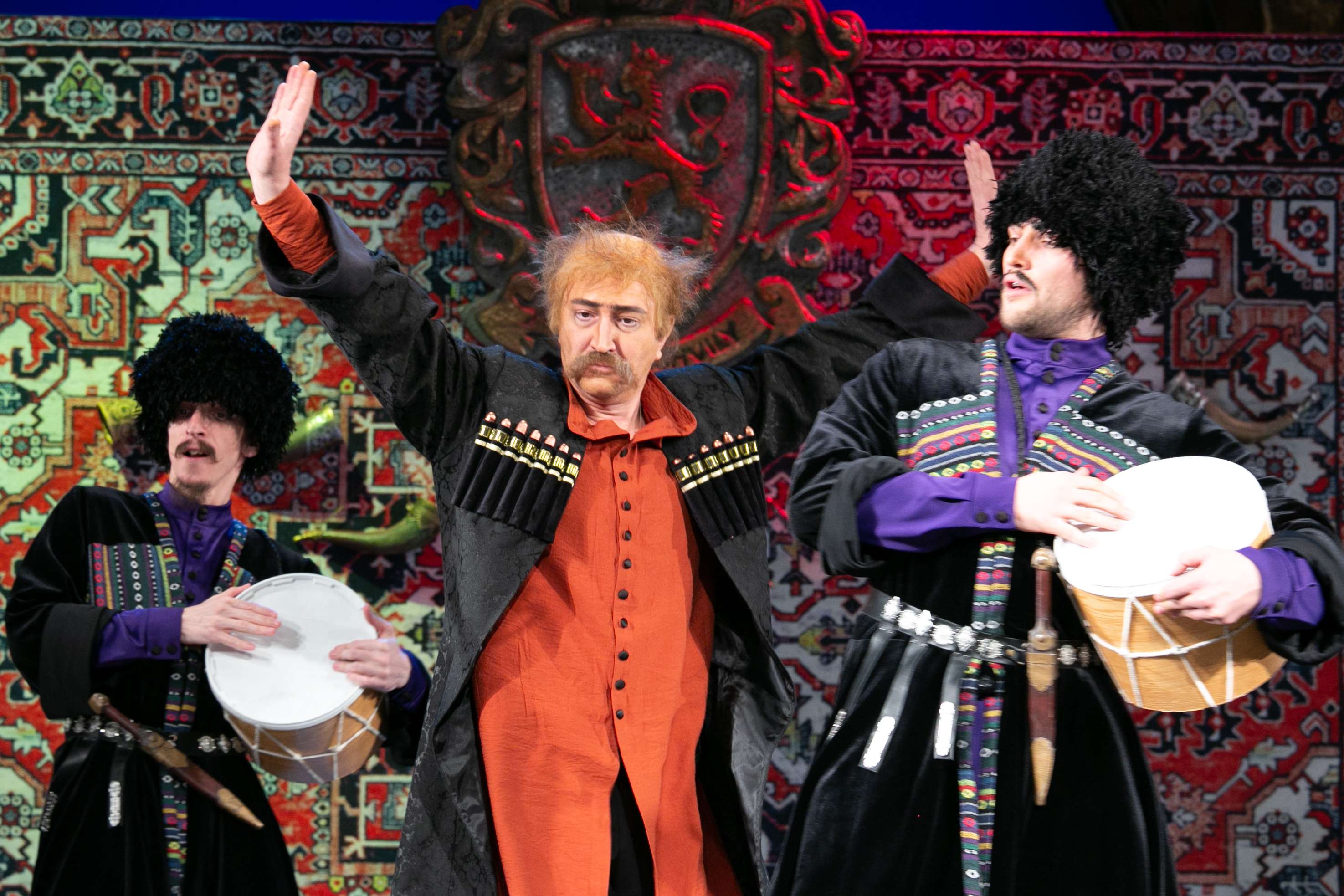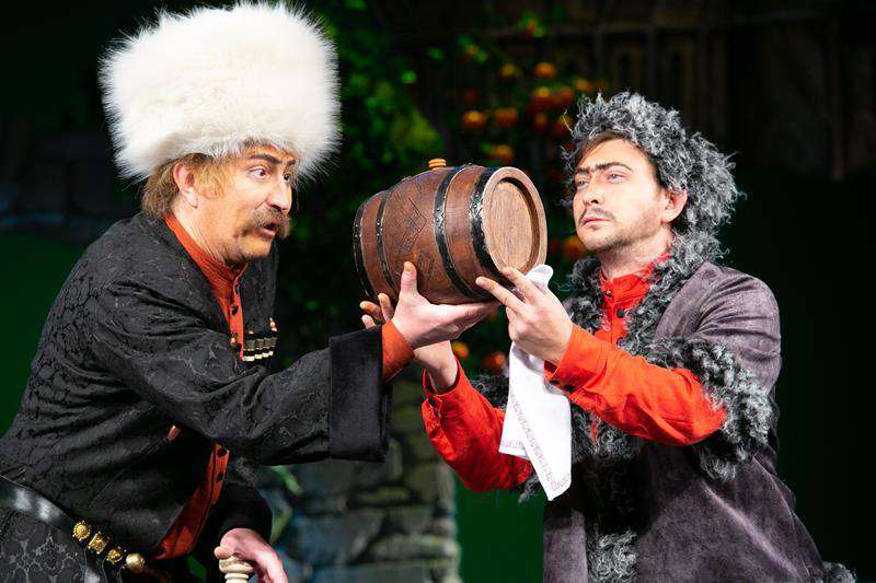Осенние встречи 17 ноября 2022 г. 23:27 6206 Елена Брусиловская, Алматы Национальный русский театр драмы имени М. Лермонтова открыл юбилейный 90-й сезон, и первой его премьерой стал спектакль «Тифлисские свадьбы» по пьесе грузинского драматурга Авксентия Цагарели «Ханума». Свет далекой звезды Предшествовал этому прошедший на Малой сцене театра вечер памяти народного артиста Казахстана, лауреата Государственной премии РК, кавалера орденов Трудового Красного Знамени, «Парасат», «Отан», российского ордена «Дружбы Рубена Суреновича Андриасяна. Рубен Андриасян – целая эпоха в истории лермонтовского театра, ведь он руководил им без малого 40 лет (уникальный случай!), поставив порядка ста спектаклей. Был лауреатом национальной театральной премии «Сахнагер-2018», независимой премии «Платиновый Тарлан» (2001) и премии «Алтын Адам» – Человек года. Имя Рубена Андриасяна вошло в золотой фонд отечественной культуры. Последний год своей жизни он провел с семьей в Америке, где находился на лечении. Там и умер, похоронен. Вечер памяти Рубена Суреновича прошел в необычном формате – на нем не звучали пафосные речи: друзья, коллеги и ученики режиссера вспоминали знаковые для них встречи с ним. Но самое поразительное – активным участником вечера стал… сам Андриасян. Он появлялся на большом экране, установленном на сцене, рассказывал о своих спектаклях и даже словно комментировал происходящее а зале, отвечая на обращенные к нему вопросы. Более того, Рубен Суренович «встречал» гостей вечера еще до его начала, в театральном фойе, где была развернута посвященная ему выставка. Причем стараниями хранителя музея Марины Константиновой многочисленные фотографии и афиши, рассказывающие о лермонтовском периоде Мастера, были выставлены не на традиционном стенде, а вплетены в сценические декорации его спектаклей, что придавало им жизнь, происходящую здесь и сейчас. Не случайно заслуженная артистка РК Татьяна Банченко сказала, что для нее, как, наверное, и для всех остальных, Рубен Суренович не умер, о нем можно было бы сказать словами великой поэтессы Марины Цветаевой: «Вы просто уехали в жаркие страны, ⁄К великим морям». Так и он. Словно просто уехал... Так талантливо задумал и очень оригинально провел вечер пресс-секретарь театра Алексей Гостев. Он отобрал для участия в нем всего восемь актеров – кроме Татьяны Банченко, перед зрителями выступили Анастасия Темкина, Ирина Лебсак, Сергей Погосян, Марина Ганцева, Виталий Багрянцев, Ирина Кельблер и Роман Жуков. По замыслу Алексея Гостева, число восемь несет в себе сакральный смысл – повернув ее, мы получим знак бесконечности. В вечность ушел и Рубен Андриасян. Каждый из этих восьми участников вечера вспоминал одно из событий в их жизни, связанное с Рубеном Суреновичем. Например, Анастасия Темкина, продолжательница актерской династии (ее отец народный артист КазССР Лев Темкин многие годы был ведущим актером лермонтовского театра, мать, Татьяна Темкина, заведовала литературной частью театра) рассказала, как она еще одиннадцатилетней девчонкой с подачи Рубена Суреновича впервые попала на сцену. Было это в конце 80-х годов, когда Рубен Суренович ставил один из лучших своих спектаклей – «Поминальную молитву». Заслуженный деятель РК, лауреат Государственной премии РК Ирина Лебсак, которую Алексей Гостев остроумно 