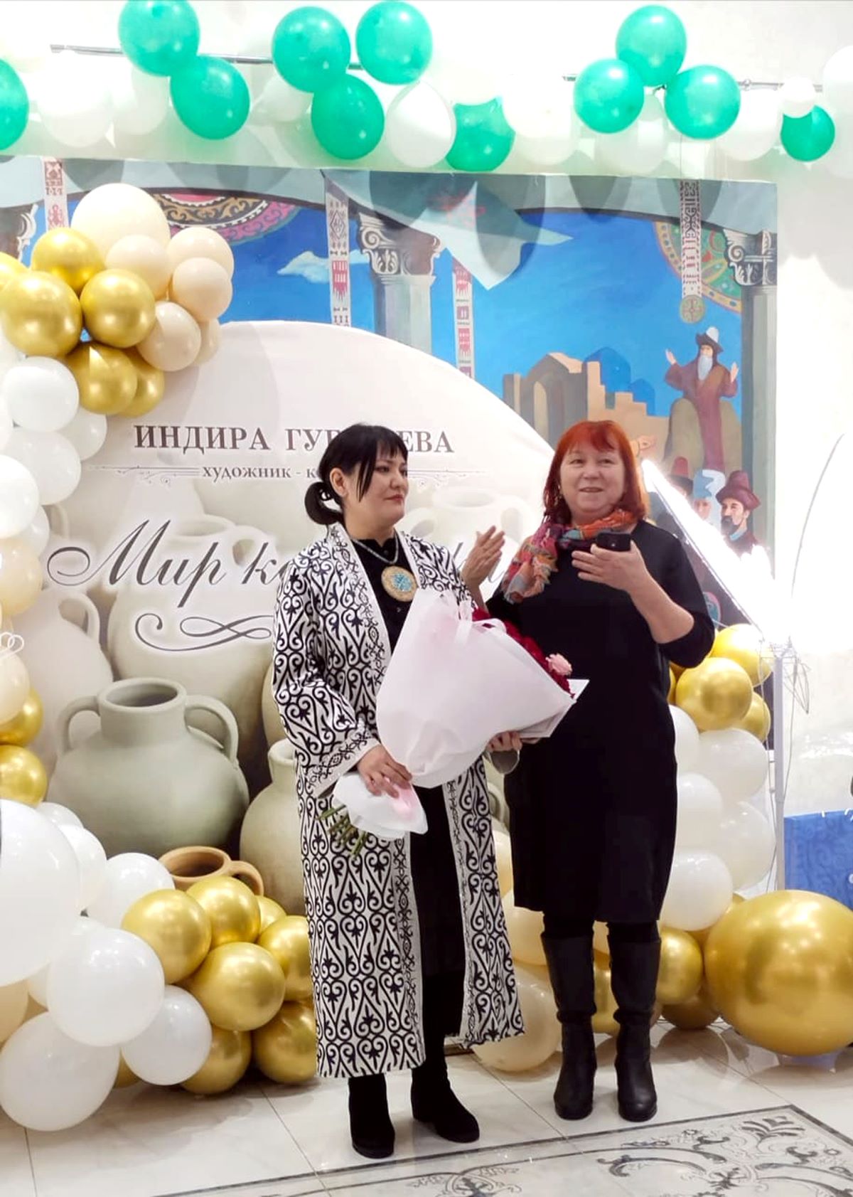 Поддержать мастерицу на открытии персональной выставки пришли друзья, родственники, коллеги, представители Союза художников РК и Союза ремесленников Жамбылской области. С приветственными словами выступили заслуженный деятель искусств РК, академик и профессор Московской академии изобразительного искусства, Международной ассоциации «Искусство народов мира», почетный профессор Университета Дулати Мухамет-Умар Паншаев, председатель Союза ремесленников Жамбылской области Серик Бисенов и глава ассоциации ремесленников «Қолөнер-Тараз» Раушан Иманали. Все они отметили высокий уровень мастерства автора выставки. Гости были приятно удивлены тем, насколько многогранно творчество таразского керамиста.
