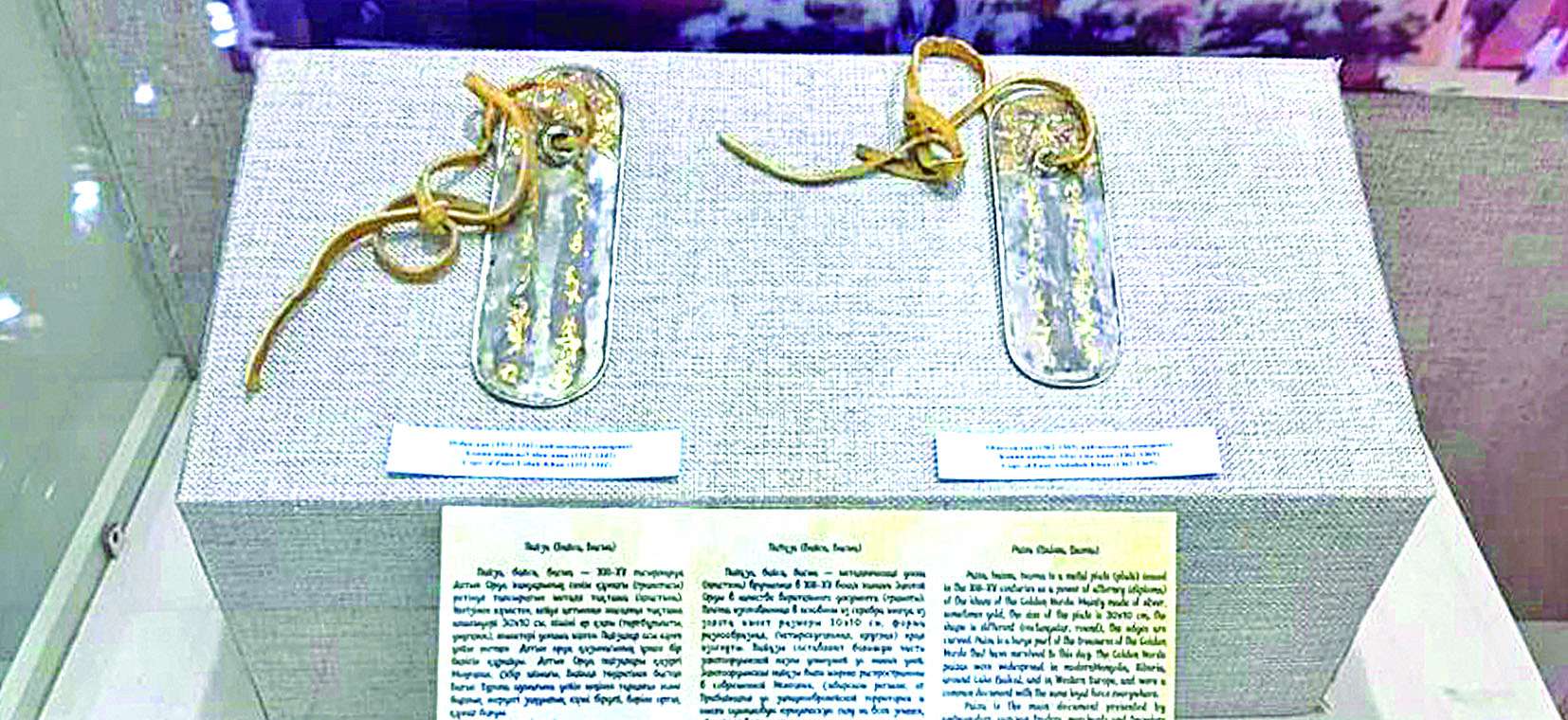 Среди редких и наиболее ценных экспонатов Атырауского областного историко-краеведческого музея можно назвать две пайзы, или верительные металлические бирки ханов Абдуллы и Узбека, которые хранятся в новом экспозиционном зале «Ұлық Ұлыс – Алтын Орда».
