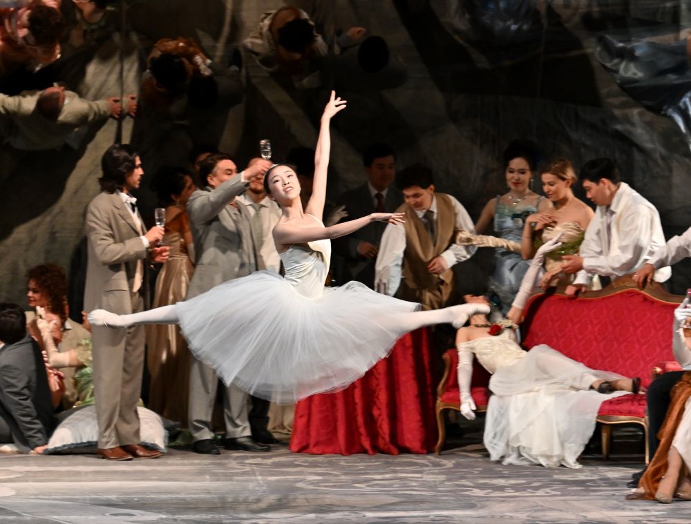 На сцене театра «Астана Опера» в легендарной опере Джузеппе Верди «Травиата» выступил звездный состав исполнителей из разных стран. Главным событием вечера стало долгожданное появление всемирно известной казахстанской оперной дивы Марии Мудряк в образе Виолетты Валери.