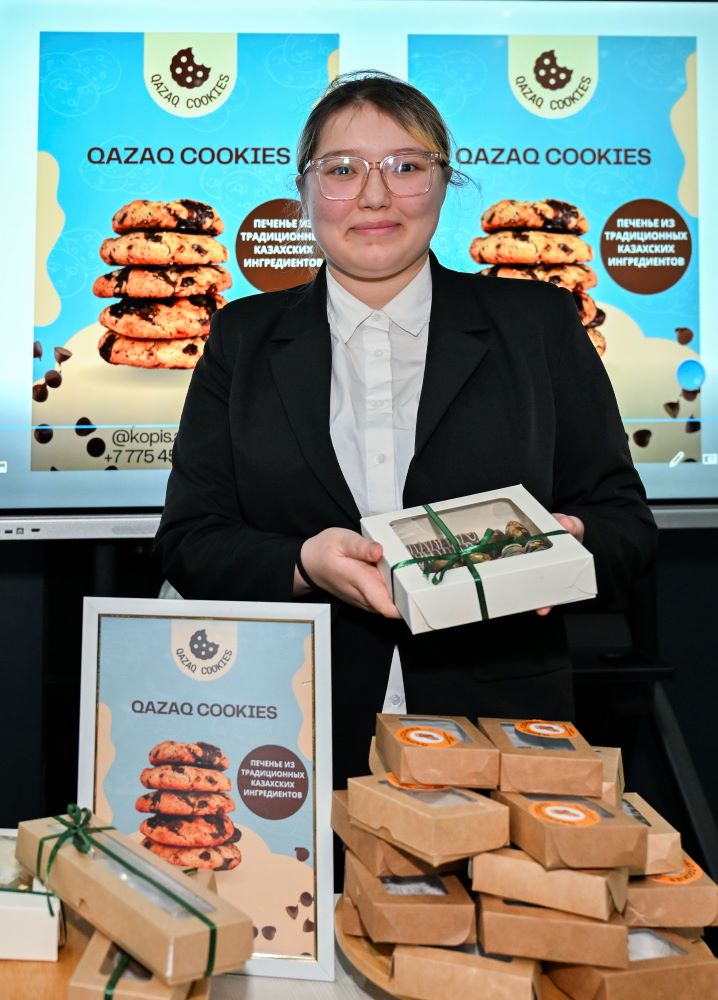 19-летняя студентка Динара Жаманбаева выпускает печенье под брендом Qazaq cookies. Это уникальные изделия со вкусом курта, жента, иримшика, шубата и других национальных ингредиентов. Третьекурсница столичного Колледжа общественного питания и сервиса учится на повара-технолога и готовить, признается, любит с детства. По ее словам, когда разговор заходит о казахской кухне, чаще всего вспоминают баурсаки, мясо по-казахски, а сладости остаются в тени.