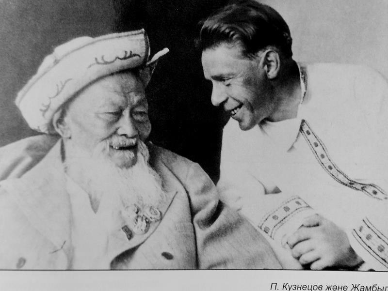 Певец, знавший миллион строк наизусть 12 марта 2021 г. 5:40 4913 Раушан Шулембаева Перо акына«Жыр алыбы Жамбыл» – так Национальная библиотека назвала выставку, посвященную 175-летию поэта-импровизатора, сказителя и воинственного жыршы. Представленные на ней издания, в том числе научные исследования жизни и творчества акына, его произведения, переведенные на десятки языков, подтверждают, что Жамбыл Жабаев – это одно из удивительных явлений в истории национальной культуры. Мощь и сила песен акына, сумевшего заслужить всенародное признание, поставили его в один ряд с известными поэтами.Между началом и концом жизни певца-импровизатора пролегла целая эпоха. Жамбыл родился, когда в России еще существовало крепостное право, николаевские жандармы, когда писали гусиным пером. История его жизни по праву составляет часть истории народа Казахстана.При жизни Жамбыла записи его выступлений на граммофонные пластинки производились очень редко. Возможно, здесь свою роль сыграли и годы акына, в силу которых ему трудно было выполнять правила, предъявляемые к певцам при записи. Говорят, единственная сохранившаяся запись голоса акына – его «Терме». Произведена она Всесоюзным радио на граммофонную пластинку в 1936 году, во время Декады казахского искусства в Москве.Надо признать, что существовала недооценка живого звучания голоса Жамбыла: многие записи его выступлений как технически несовершенные были выбракованы и утрачены навсегда. Тем не менее история сохранила музыкальные произведения пусть и не в исполнении самого Жамбыла... Они были записаны на магнитофон по напевам поэтов Гали Орманова и Таира Жарокова, длительное время бывших литературными секретарями или, образно говоря, пером акына.«Аюгай» – первая любовьОсобняком в творчестве певца-импровизатора стоит лирическая песня «Аюгай», с которой связана одна из трагических страниц его жизни.По воспоминаниям Таира Жарокова, он и Кенен Азербаев в 1937 году сопровождали Жамбыла на Кавказ. Во время путешествия он часто брал домбру и исполнял эту песню, от которой у него наворачивались слезы на глаза. Объясняя свои чувства, Жамбыл рассказал, что автором песни «Аюгай» была известная в свое время девушка-акын Сара, с которой он не раз состязался на айтысах и полюбил ее. Однако отец Сары выдал ее замуж за сына местного бая. Ревнивый муж запретил ей не только петь, но даже появляться на людях. Очевидно, запрет был нарушен, и муж в ярости убил Сару. Эта трагедия оставила глубокий шрам на сердце Жамбыла.Отдельного слова заслуживает писатель, поэт и переводчик Павел Кузнецов. Его большой заслугой на литературном поприще называют открытие им для русского читателя Жамбыла – корифея казахской устной поэзии. На долгие годы Павел Николаевич связал свою творческую судьбу с акыном и перевел десятки его песен, стихотворений и поэм.Произведения Жамбыла на русском языке сразу же выходили в большую прессу: их печатали «Правда», «Литературная газета», «Труд», «Комсомольская правда», «Сельская жизнь». Книги на русском языке с именем Жамбыла появлялись на прилавках магазинов и в библиотеках, его стихи звучали по радио.И в этом – огромный переводческий труд Павла Кузнецова, он глубоко уважал акына и преклонялся перед его мудростью и талантом. Свое восхищение дарованием Жамбыла, его тернистым жизненным путем, свою л