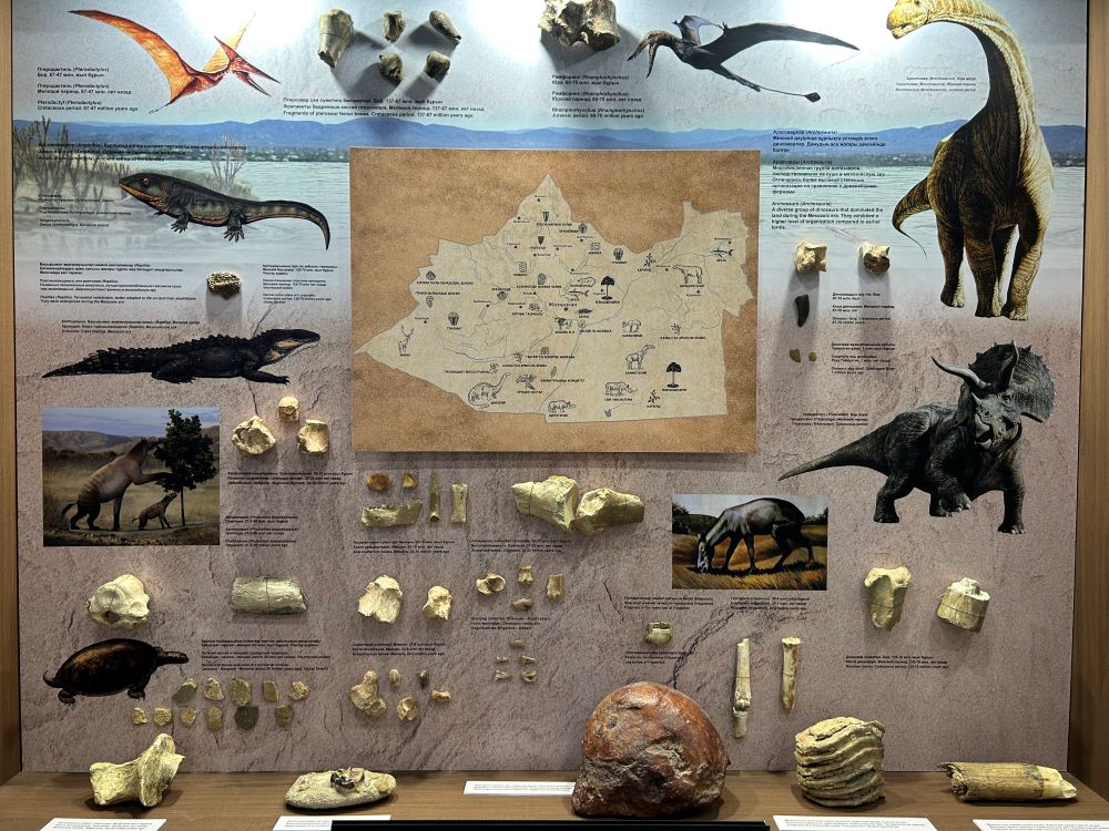 Новую экспозицию Жезказганского областного историко-краеведческого музея открывает уникальная палеонтологическая коллекция. Из 216 экспонатов особо выделяется стопа гигантского травоядного носорога – парацератерия, который обитал на территории современного Центрального Казахстана, а также в юго-восточной части нашей страны около 30 млн лет назад.