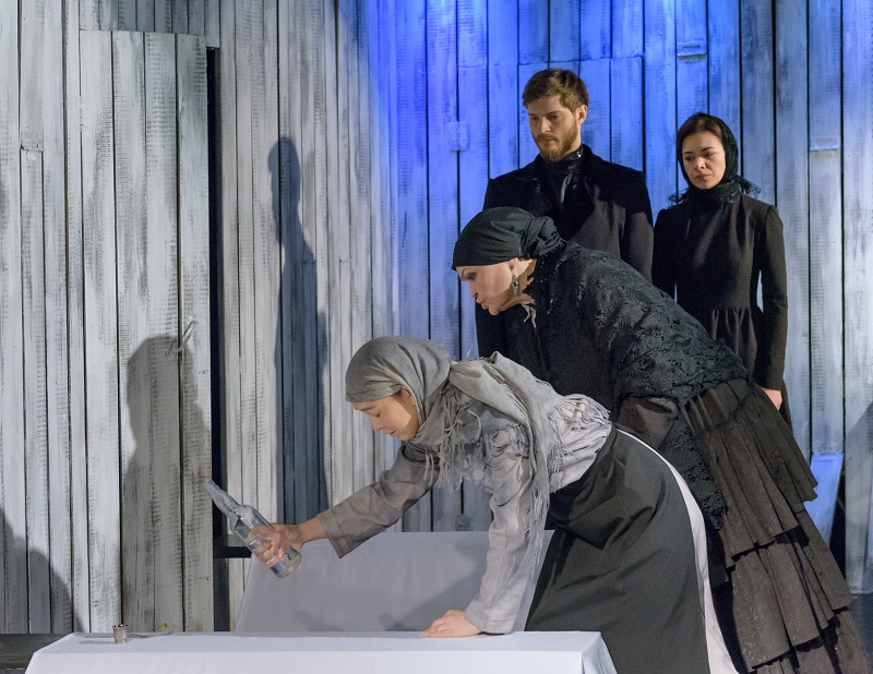 Да и как тут не будешь волноваться, если с героями представления, знакомыми тебе еще со школьных лет, ты вдруг оказываешься (премьера состоялась до введения карантина – Ред.) за одним забором и сам становишься пленником «темного» царства? Тут-то в первую очередь и хочется сказать об эстетике спектакля, сконцентрировавшей в себе продуманность режиссерского осмысления трагедии семейных отношений и сценографическое решение. Режиссер Рача Махатаев и художник-постановщик Ильшат Вильданов (тоже петербуржец) обошлись минимумом визуальных акцентов, но настолько работающих и стимулирующих воображение, что подлинная сущность персонажей Александра Островского проявилась с очевидностью обратной стороны медали, обнажая не столько текст, сколько подтекст.