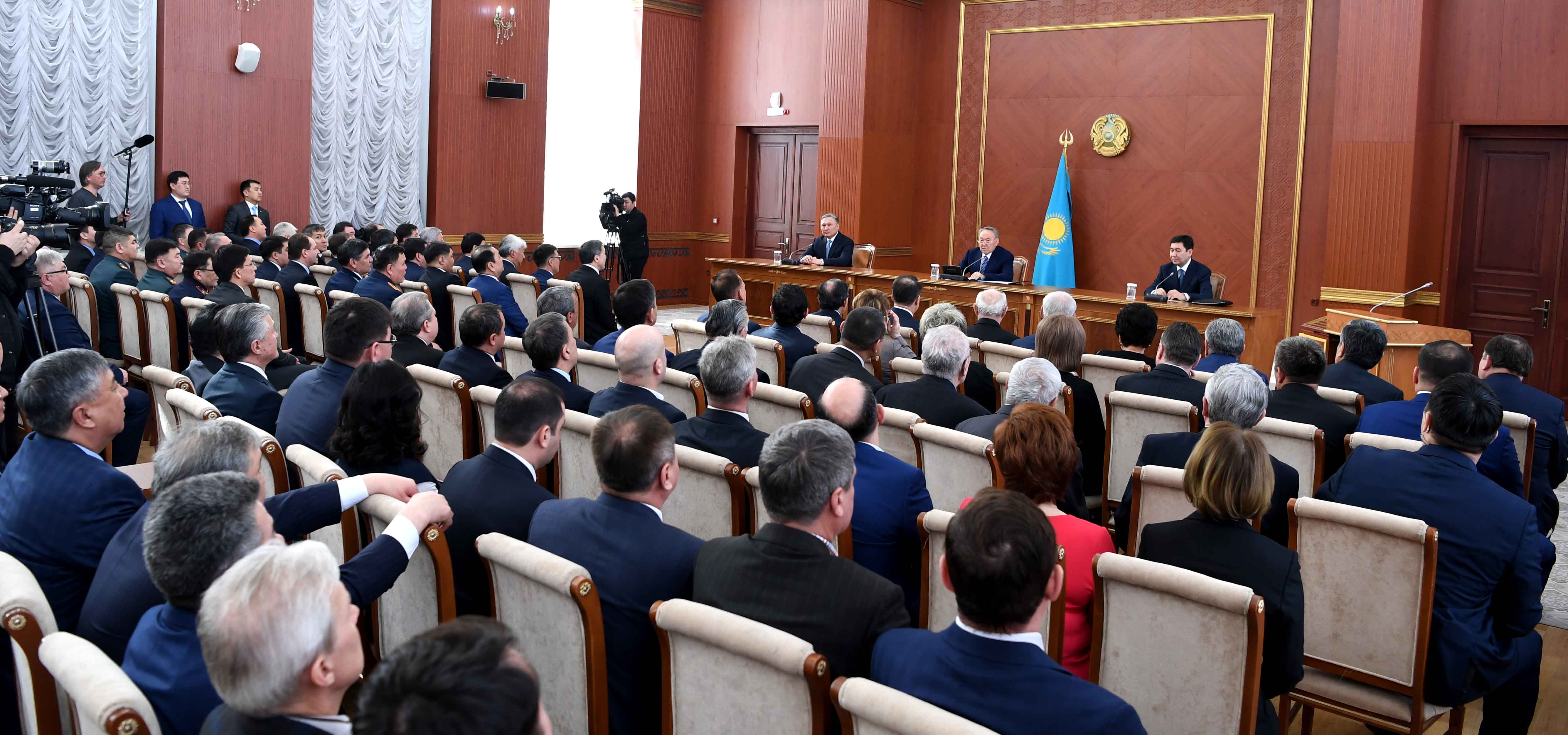 Нурсултан Назарбаев уделил особое внимание процессу политических реформ в стране, подчеркнув важность аспектов сохранения президентской вертикали и повышения ответственности всех ветвей государственной власти.