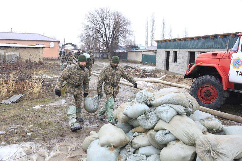 Из-за непривычно большого объема снега этой зимой, недавнего резкого повышения температуры воздуха, а затем и дождя накопление влаги в горах вызвало склоновые стоки, которые опасны возможным нанесением ущерба близстоящим жилым домам, подтоплением дорог и коммуникаций. В зоне риска оказались сразу четыре района: Шуский, Рыскуловский, Меркенский и Сарысуский. Вода «оккупировала» более полусотни домов.