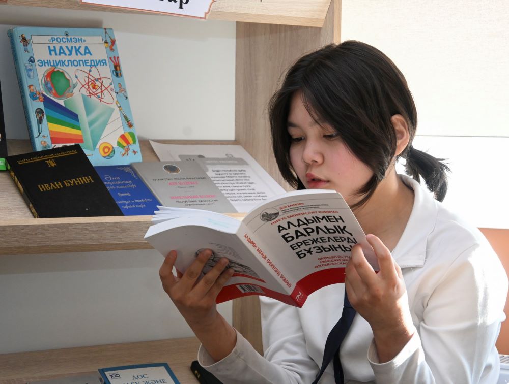 Шестиклассница Гульдана Бауыржанкызы также участвует в мероприятии «Оқуға құштар мектеп» – и после уроков спешит в библиотеку. Среди любимых книг ученицы – «Балалық шаққа саяхат» Бердибека Сокпакбаева. Гульдана часто участвует в конкурсах чтения, занимая в них призовые места.