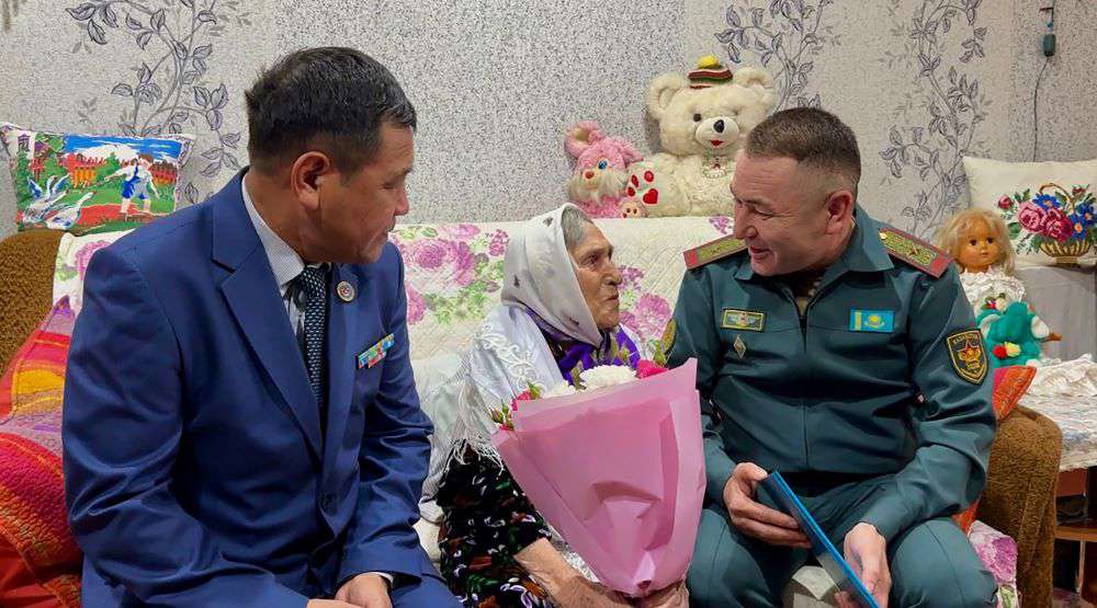 В Усть-Каменогорске офицеры областного департамента по делам обороны поздравили со 100-летним юбилеем ветерана войны Александру Саратовцеву. Как отметил начальник службы по работе с ветеранами Асет Адамбаев, жизненный путь Александры Тихоновны – это живая история, отражающая тяготы и героизм военных лет.
