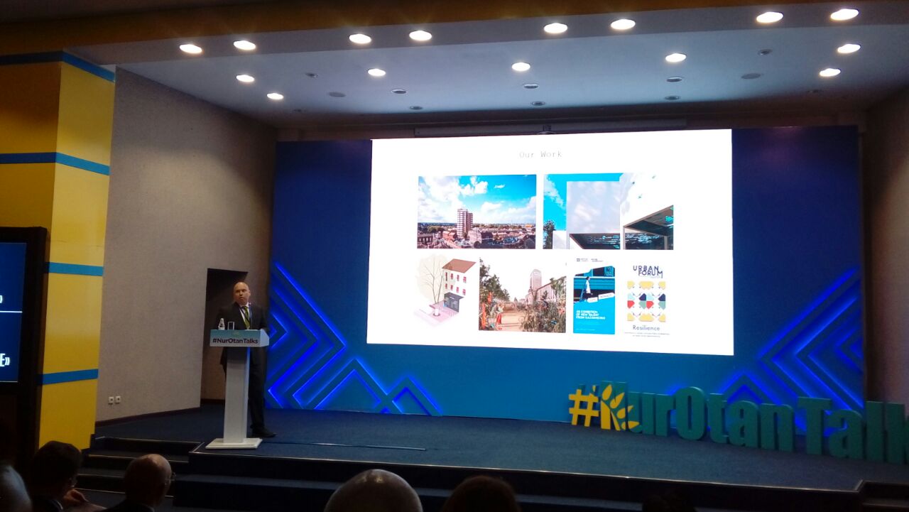 В числе спикеров выступили: управляющий международным финансовым центром "Астана", член совета директоров АО "ЕНПФ" Кайрат Келимбетов; архитектор первого класса, исполнительный директор "Imayo creation", ученик всемирно известного архитектора Кишо Курокавы, член Токийского общества архитекторов и строительных инженеров, Юджи Имайо; архитектор, управляющий директор Atomik Architecture, лектор по урбанистике в университетах Великобритании, Германии и Казахстана Майкл Оудс; архитектор, директор департамента – ответственный за регионы Северная, Латинская Америка, Европа, Ближний Восток и Африка, Корпорация NEC (Япония) Хироши Кавада.