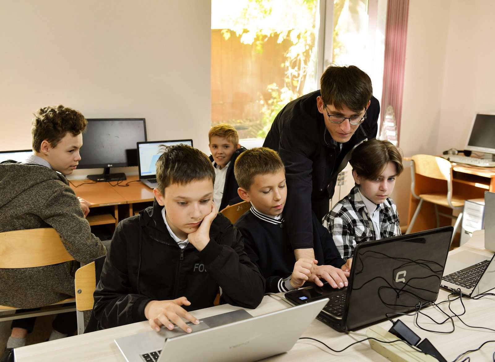Заходим в первый кабинет. Здесь юные айтишники «колдуют» над графическим дизайном.