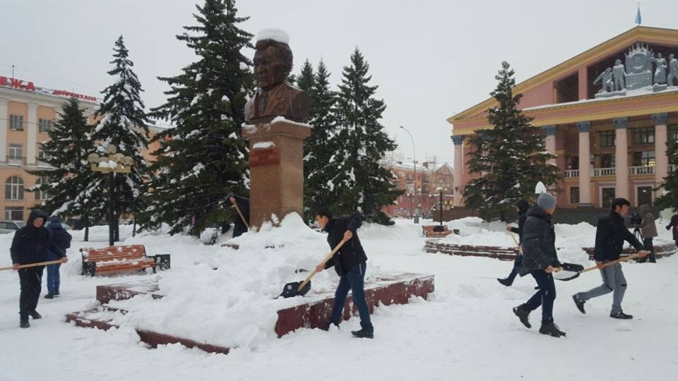 Жители Усть-Каменогорска не остаются в стороне, расчищая дворы и тротуары.