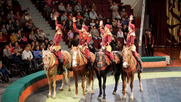 Конники-акробаты уже давно стали главной гордостью столичного цирка, ведь джигитовкой похвастать может не всякий творческий коллектив. С легкостью парни взбираются в пирамиды, на скаку совершают сложные трюки и… воспаряют к куполу цирка вслед за голубым полотном – флагом Республики Казахстан.